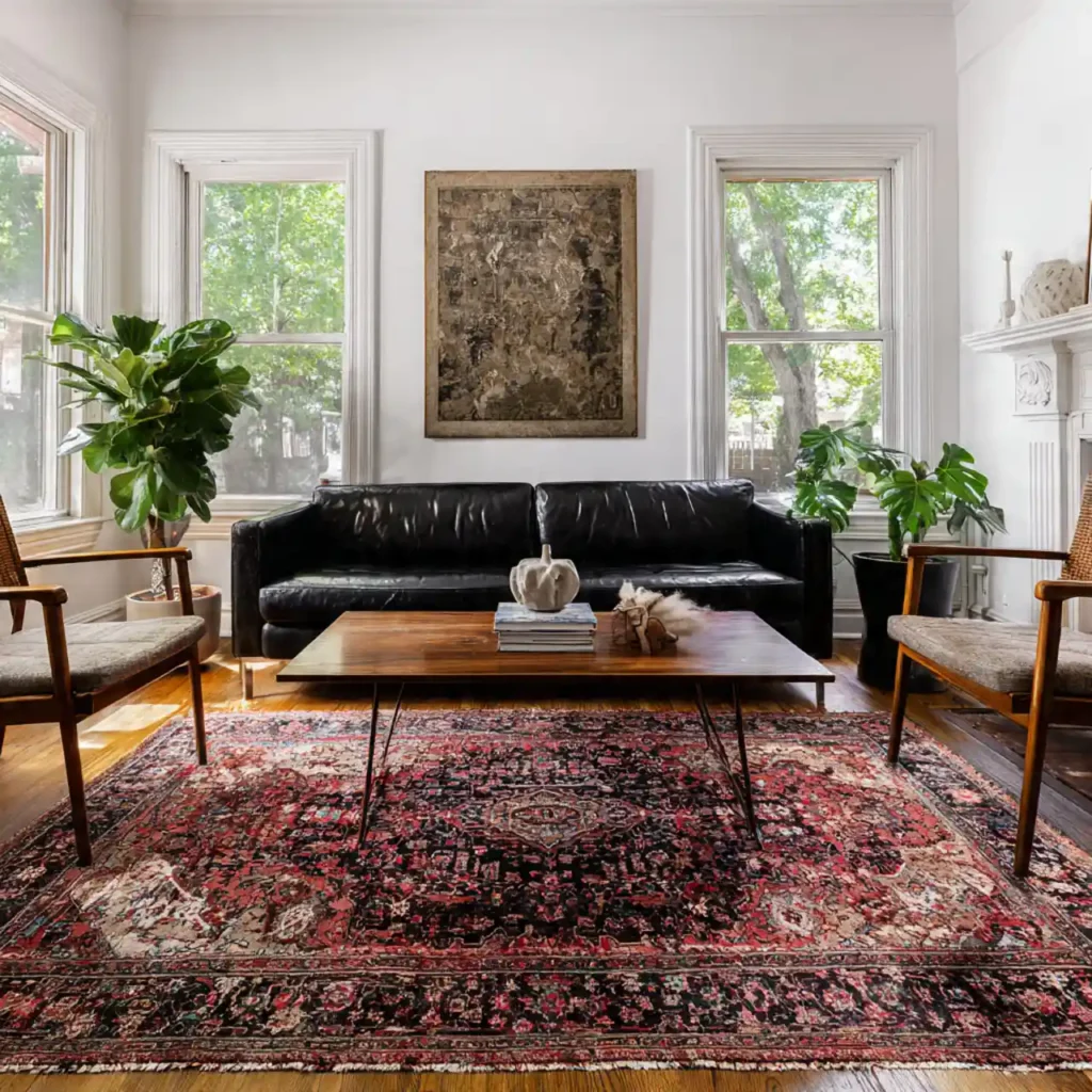 Vintage rugs bring history, charm, and rich color to living rooms. They work beautifully with both traditional and modern furniture. Their intricate patterns add warmth and depth.