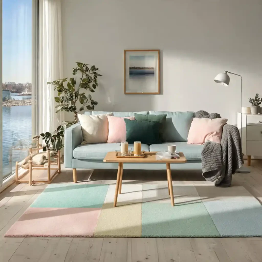 Pastel rugs add subtle color without overpowering the space. They create a light, airy feeling and suit Scandinavian-inspired interiors. This choice promotes balance and calm.