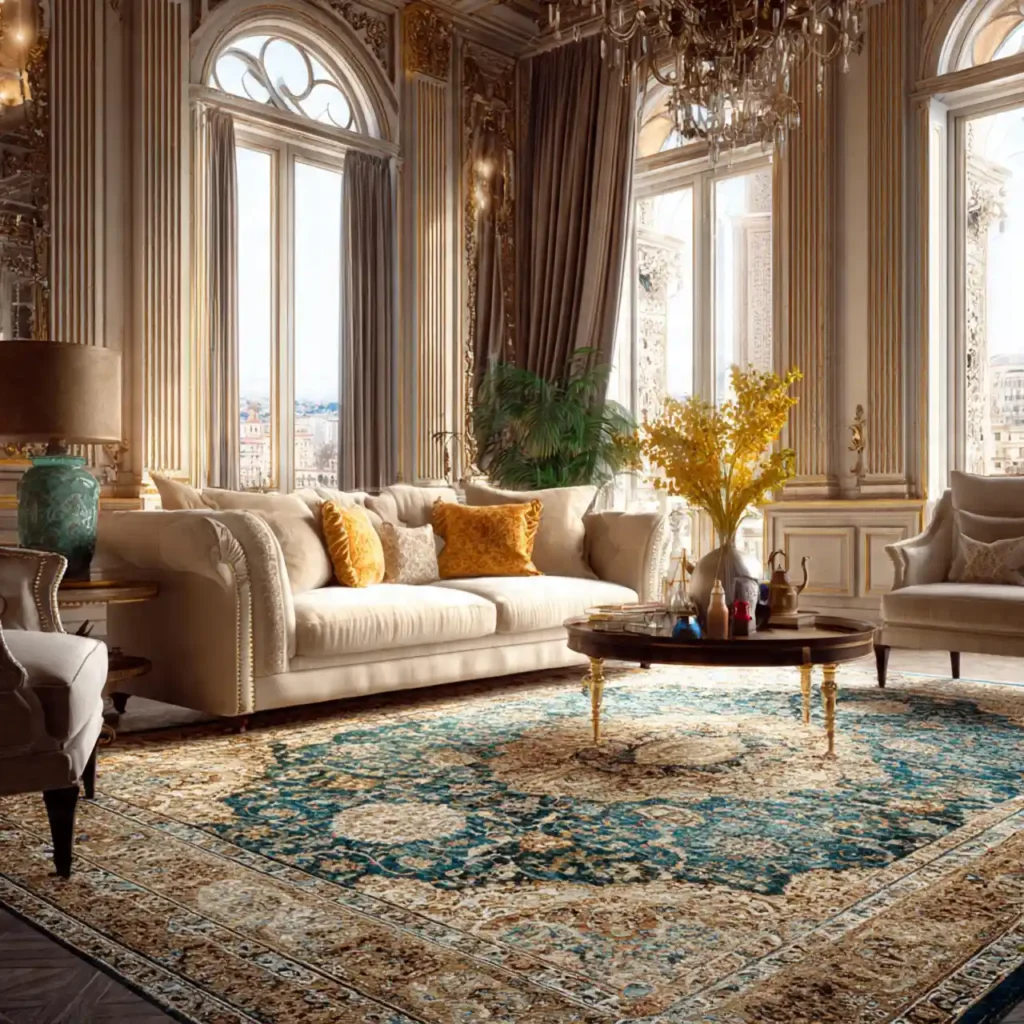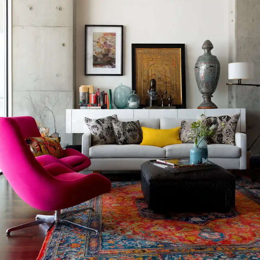 Mixing a traditional rug with modern furniture creates visual contrast. This pairing adds depth and personality. It balances old and new effortlessly.