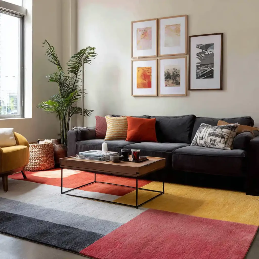 Color-blocked rugs introduce structure and contemporary flair. They define zones while adding visual interest. This style suits modern urban homes.