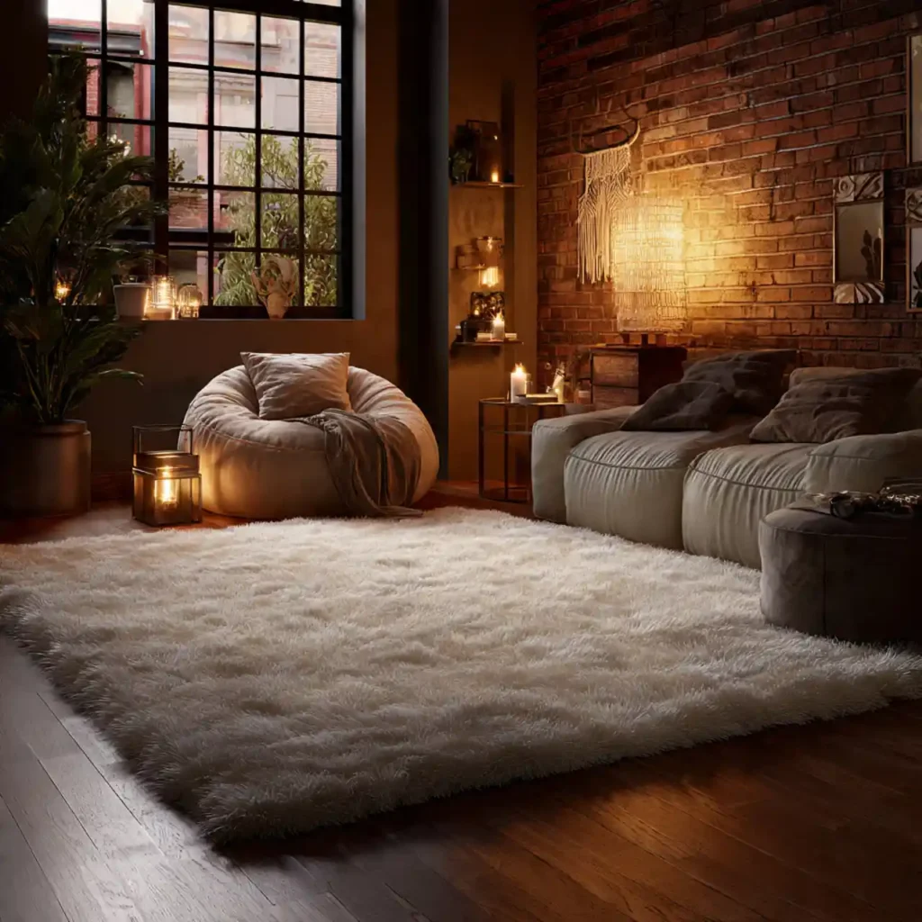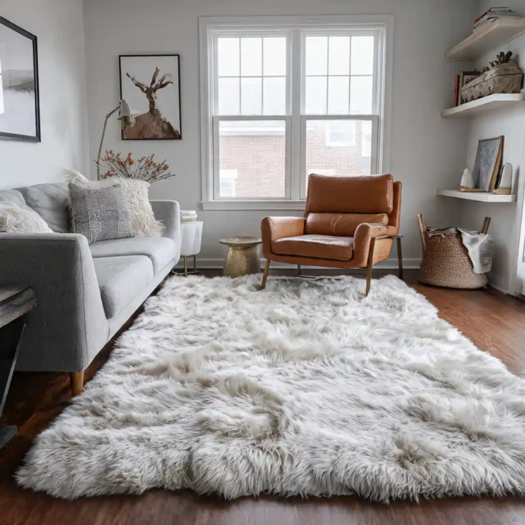 Faux fur rugs add instant softness and warmth. They work well as accent rugs layered over larger pieces. This choice enhances comfort and luxury.